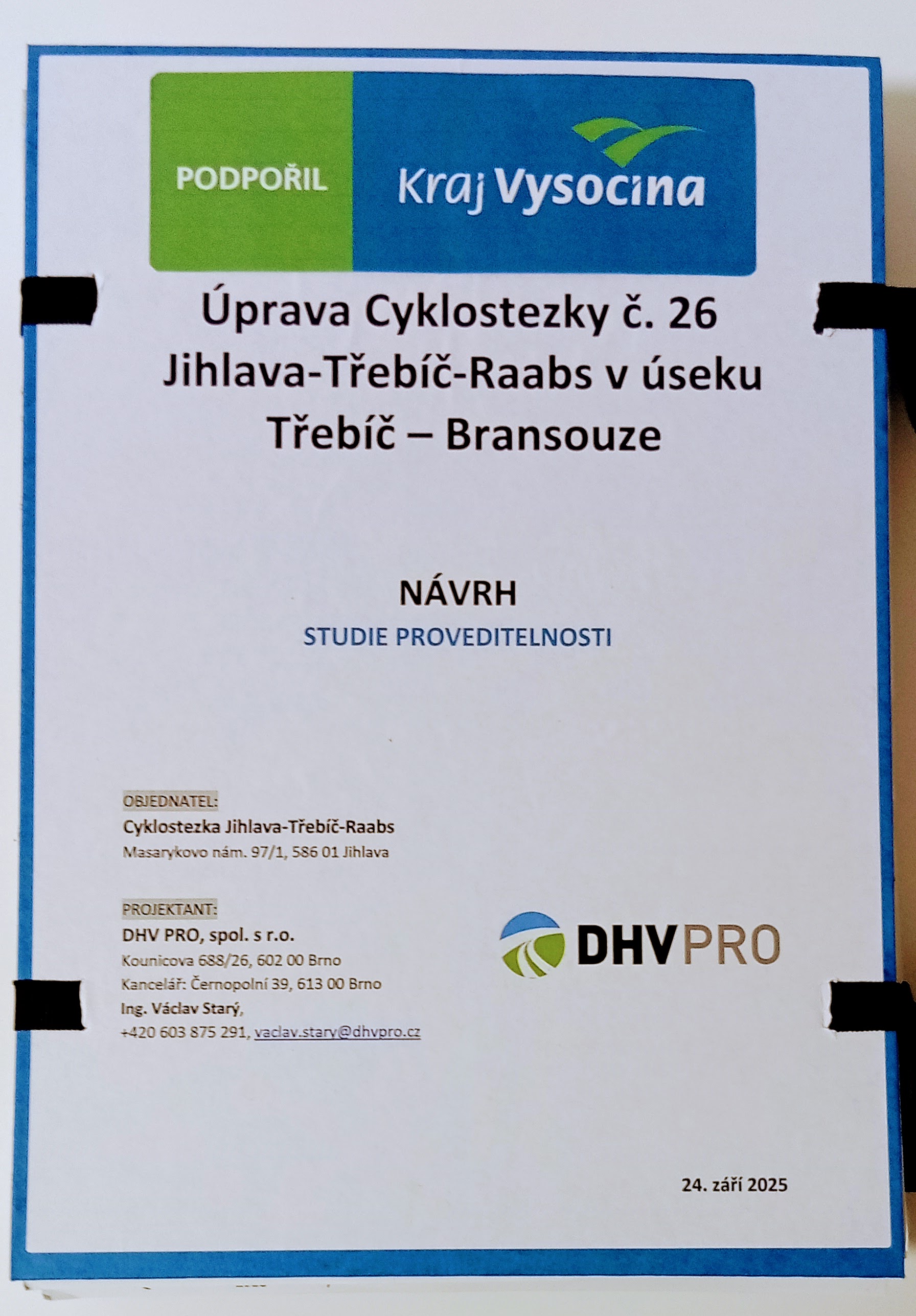 S dotační pomocí Kraje Vysočina byla zhotovena studie proveditelnosti úprav stávajícího vedení Cyklotrasy č. 26 v úseku Třebíč-Bransouze.
